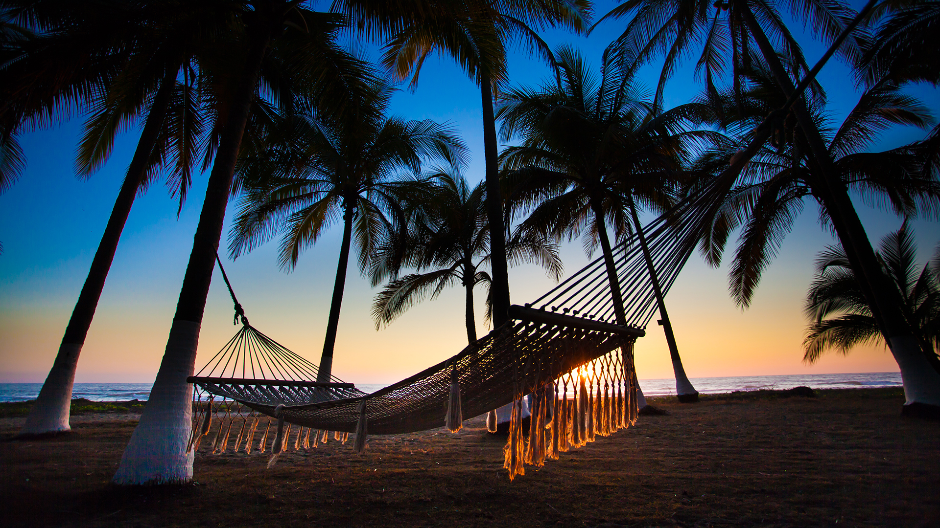 This week’s shot is a hammock under silhouetted palms at sunset. Enjoy
