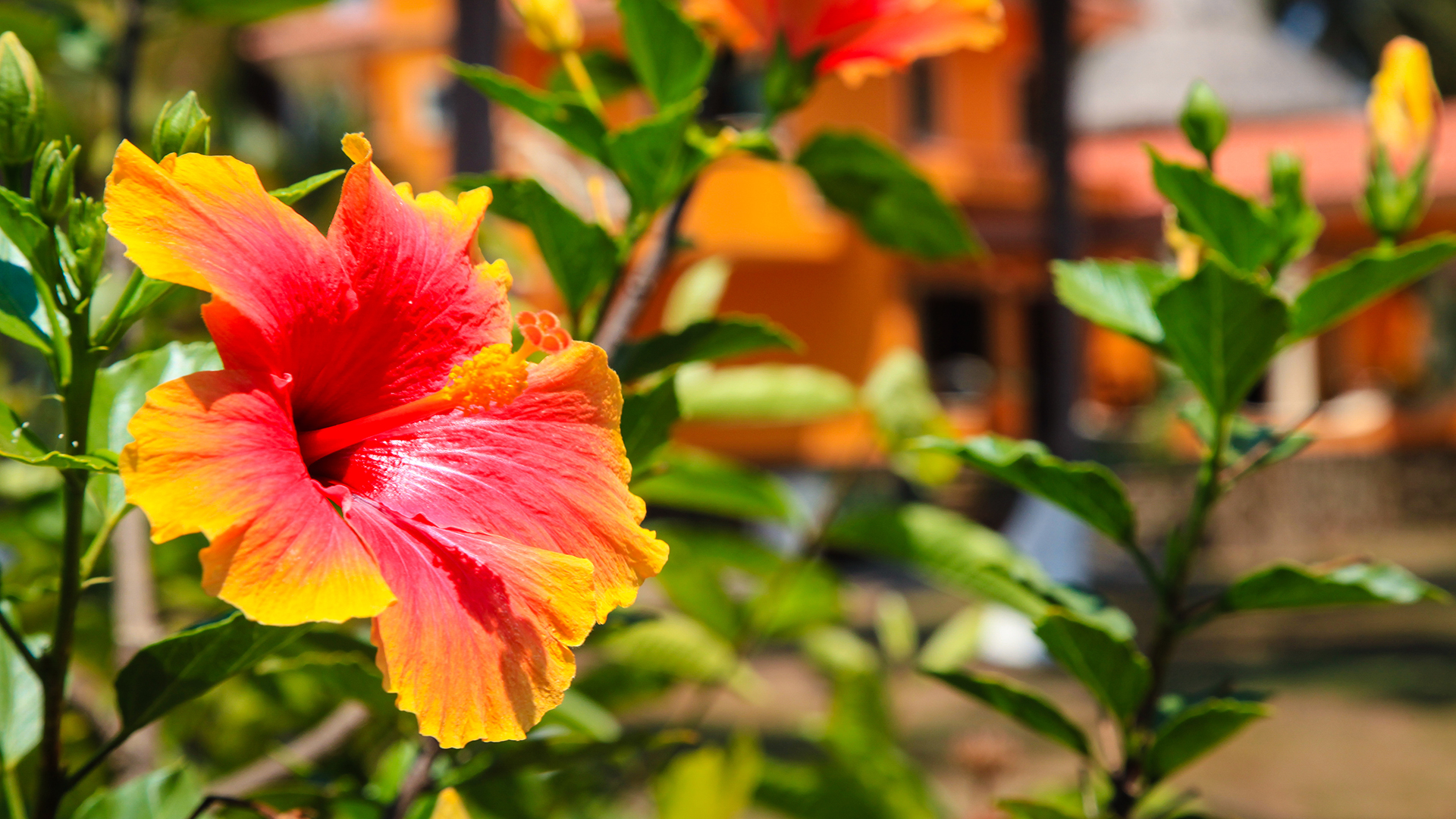 This week’s shot is a of the lovely Hibiscus flower. They come in all colors – this orange/red variety is particularly lush. Enjoy!