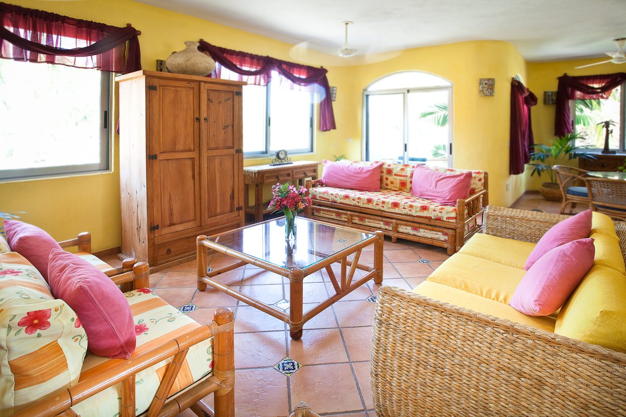 Both bedrooms come complete with a private bath and terrace. A trundle bed in the living area provides a great option for an added guest or child. The beauty of Las Palmas is accentuated with an eclectic collection of local art and finishes. Authentic tile, stucco and Huanacaxtle woodwork are present throughout.