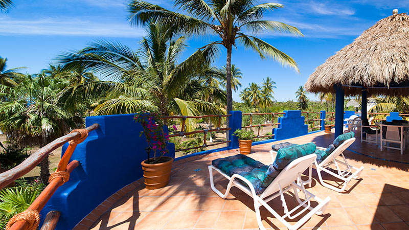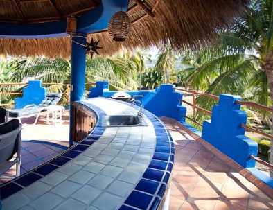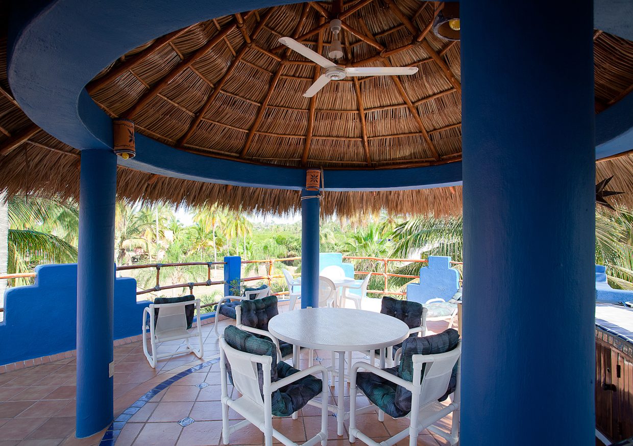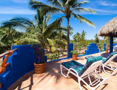 For the real gem of this villa, head up to the roof. Amongst the palms is a large rooftop deck that’s sure to be a place you’ll enjoy. A thatched-roof palapa covers an outdoor dining area and bar. A number of comfortable lounge chairs provide a place to kick back, relax and soak up some sun. Grab a yoga mat, a book, or maybe just a margarita. Your rooftop hideaway is the perfect place to share meals, conversations, and cocktails.